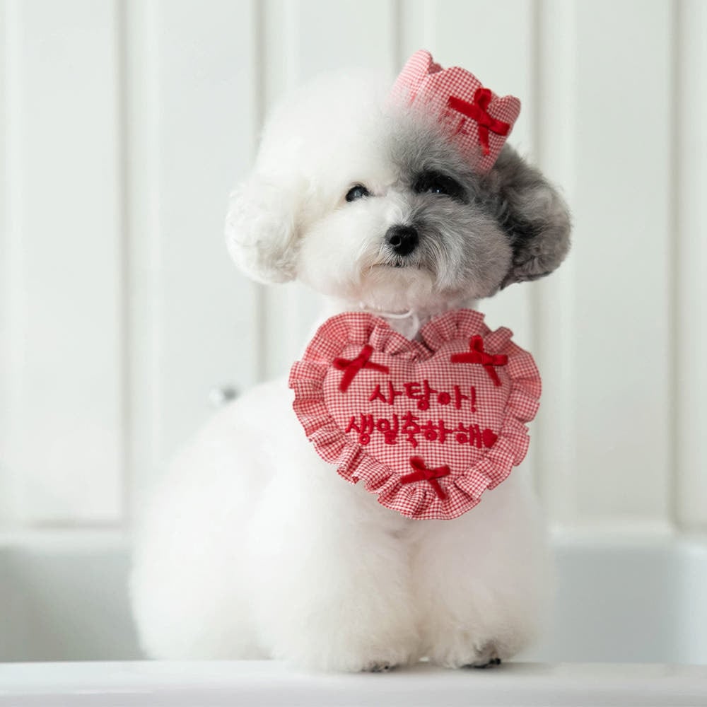 【即納】Happy Birthday Cushion Heart Bib -Red.ver- 〈3color〉/ mymay 韓国犬服