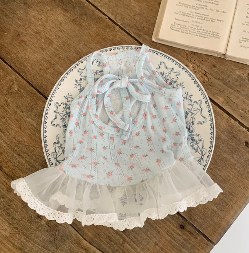 【予約】Strawberry Flower Ribbon Dress〈3color〉 / Lolifa select 韓国犬服