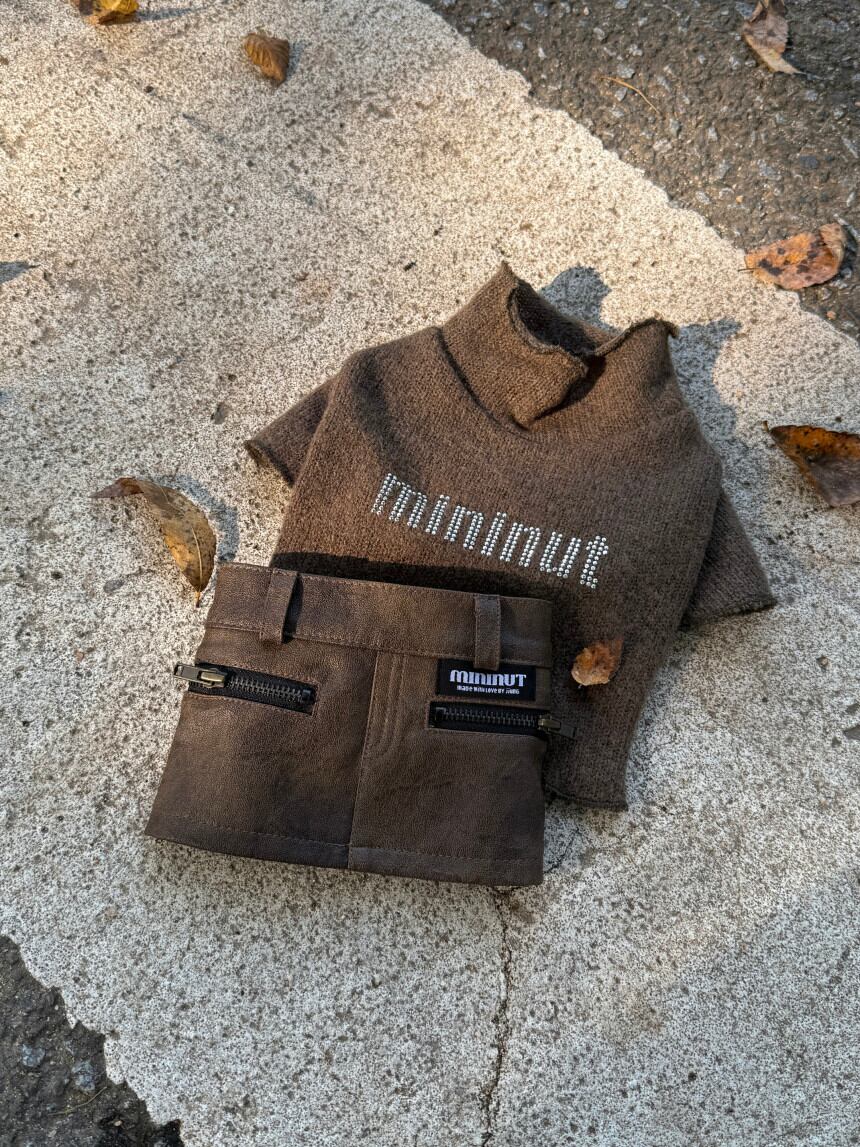 【予約】Vintage Leather Double Trouble Skirt〈2color〉 / mininut 韓国犬服
