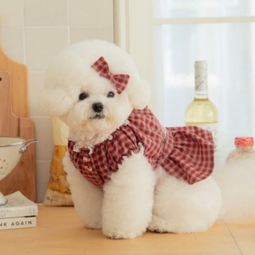 【即納】Amur Red Check Dress / the cheri 韓国犬服