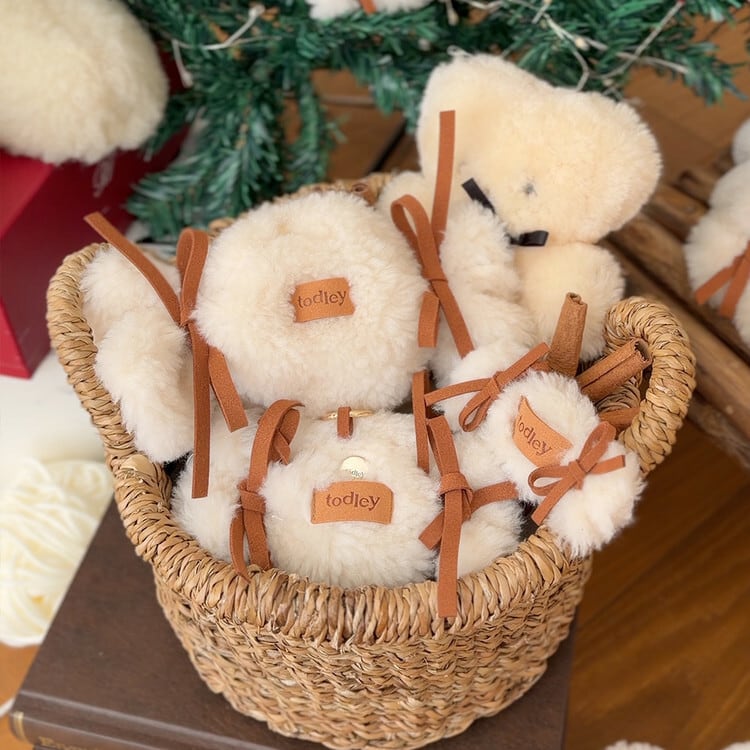 ふわふわしたウールのテクスチャーとリボンのポイント。