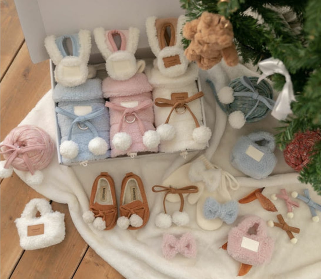 ※Winter fluffy earmuff、Pompom ribbon broochは