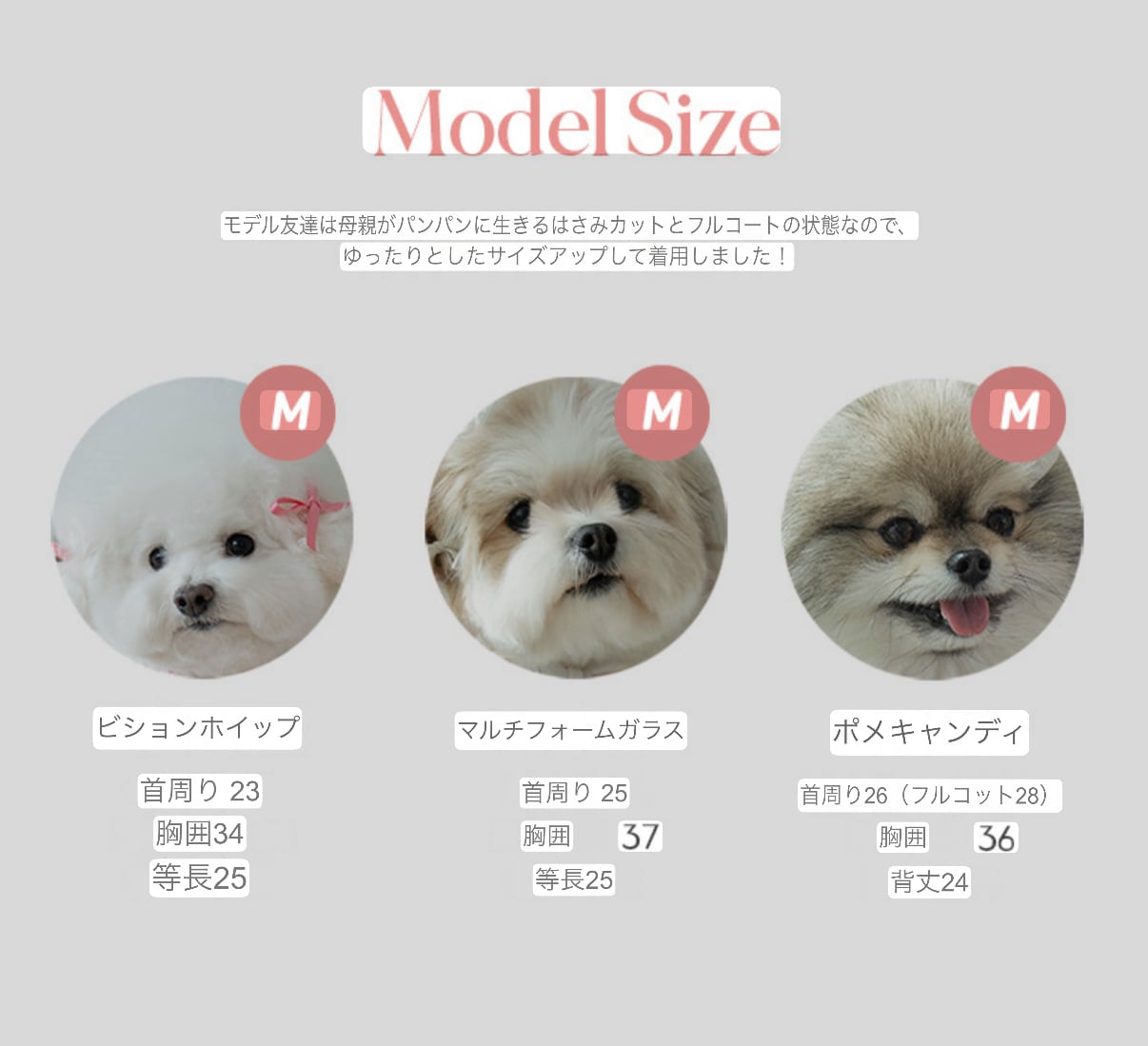 首周り23cm / 胸囲34cm / 背丈25cm
