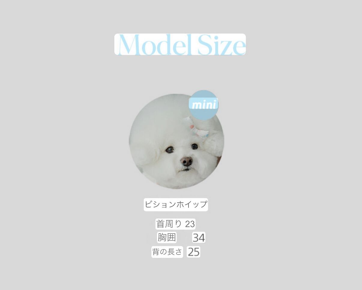 首周り23cm / 胸囲34cm / 背丈25cm